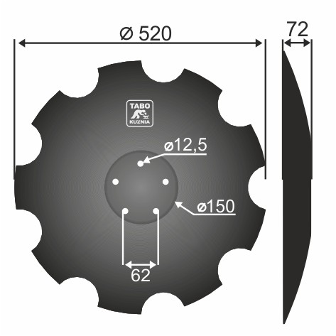 Horsch Talerz brony talerzowej uzębiony Średnica [mm]: 520 Ilość otworów [szt.] : 5 Grubość blachy [mm] : 6 Rozstaw otworów [mm] : 62 28071305