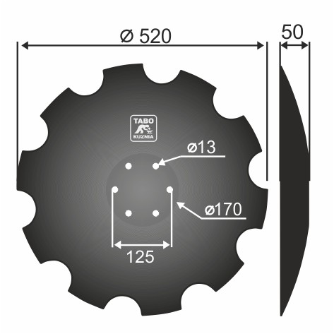Horsch Talerz brony talerzowej uzębiony Średnica [mm]: 520 Ilość otworów [szt.] : 6 Grubość blachy [mm] : 6 Rozstaw otworów [mm] : 125 00311461