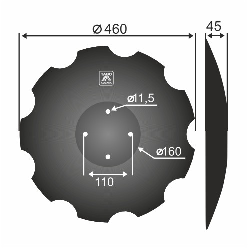 Amazone Talerz brony talerzowej uzębiony Średnica [mm]: 460 Ilość otworów [szt.] : 4 Grubość blachy [mm] : 4 Ro XL034zstaw otworów [mm] : 110